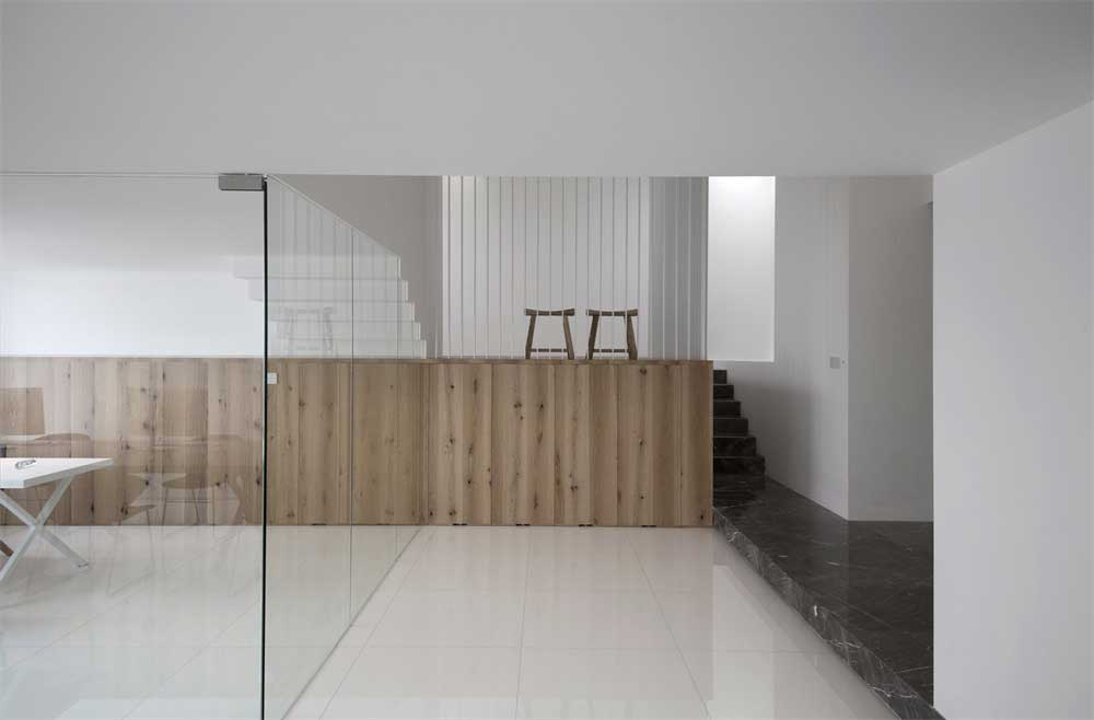 原木系的護(hù)墻板包邊,黑色大理石的樓梯的過(guò)道,設(shè)計(jì)新穎,理念前衛(wèi)。