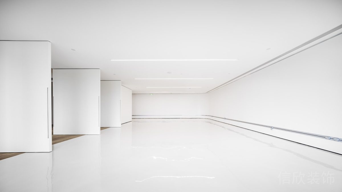 辦公區(qū),鋪環(huán)氧地坪漆,白色現(xiàn)代化辦公桌,灰色軟包隔斷,黑色噴漆不銹鋼工業(yè)風(fēng)吊頂,簡(jiǎn)約時(shí)尚,吊燈和射燈搭配增強(qiáng)光影效果。